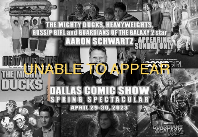 MIGHTY DUCKS, HEAVYWEIGHTS, GOSSIP GIRL and GUARDIANS OF THE GALAXY 2 star Aaron Schwartz hits DCS April 29-30, 2023 (appearing SUNDAY ONLY)!