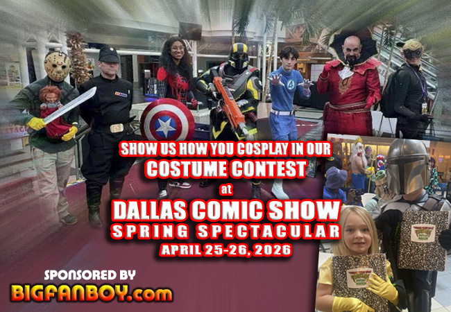 What better way to spend your Saturday than showing up in your best costume at Dallas Comic Show! We love cosplayers, and we want to see your best costumes this weekend. Show us what you can do, and enter our costume contest which will be held Saturday at 5:00pm. We’ll have awesome prizes supplied from Bigfanboy.com and cool swag for the winners, and a little cash thrown in to make things exciting, this is a great opportunity to show off your best duds in a safe and welcoming environment. Dallas Comic Show is a strong supporter of safety within the cosplay community, and we’ll have security on site should there be any problems. Always remember, Cosplay is NOT consent, and if you see any inappropriate behavior don’t hesitate to alert us.You do not have to sign up in advance, simply sign up on site at the Bigfanboy.com table out front.