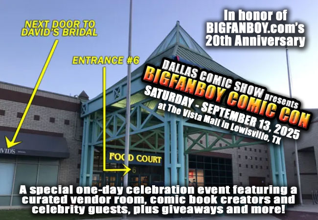 Dallas Comic Show presents BIGFANBOY COMIC CON – a special one-day celebration of Bigfanboy.com’s 20th Anniversary – Saturday, September 13th, 2025
